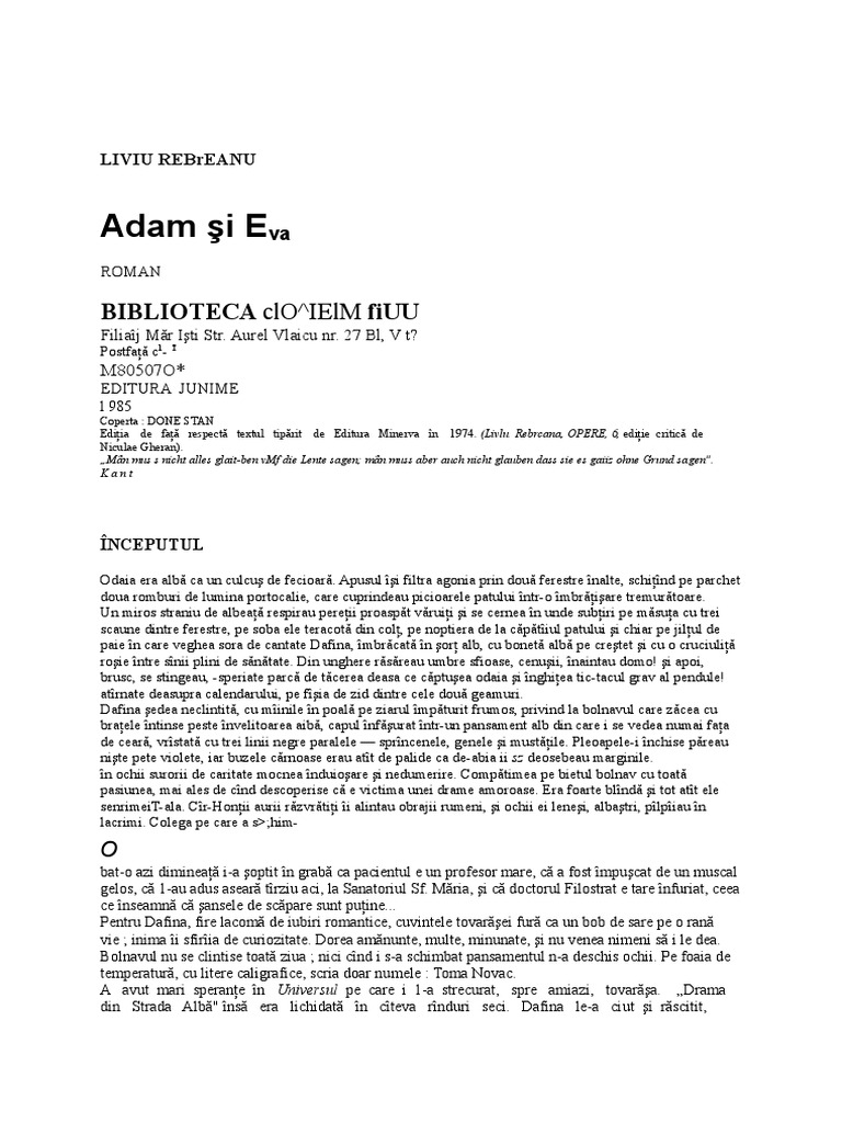 Recenzie Adam Si Eva De Liviu Rebreanu Booknation Ro