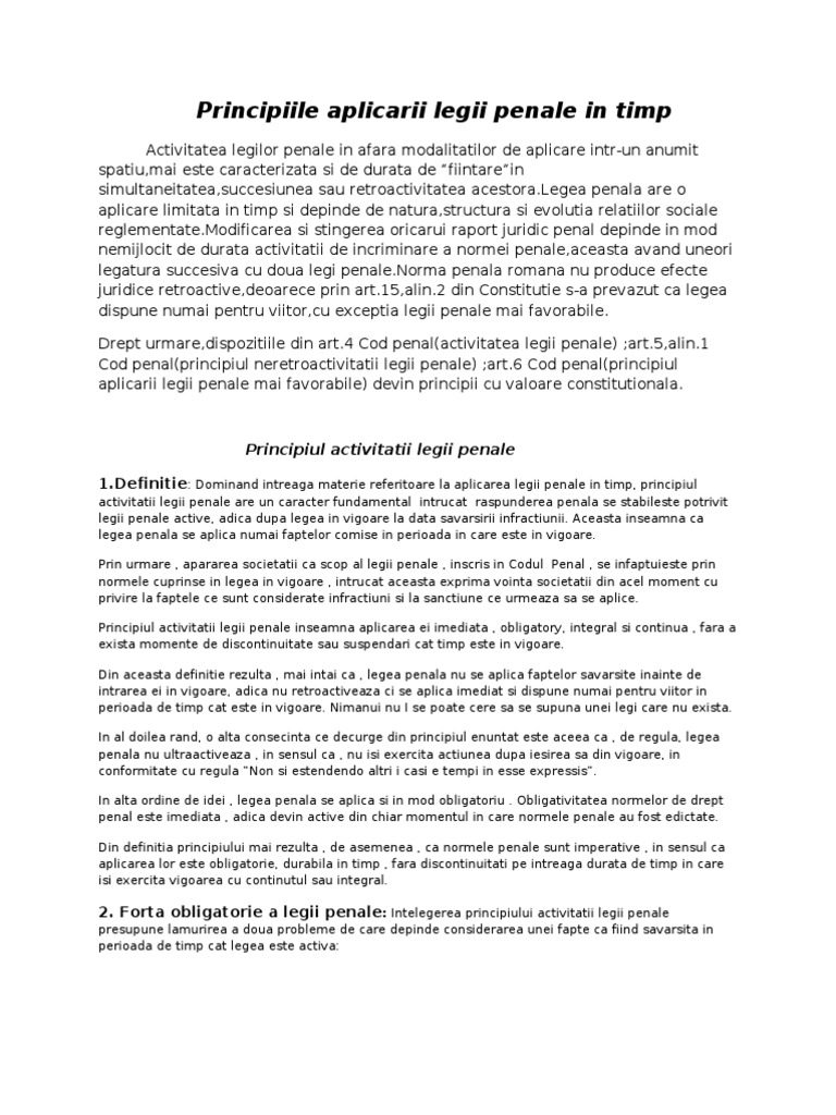 Aspecte Privind Aplicarea In Timp A Legii Penale Docsity