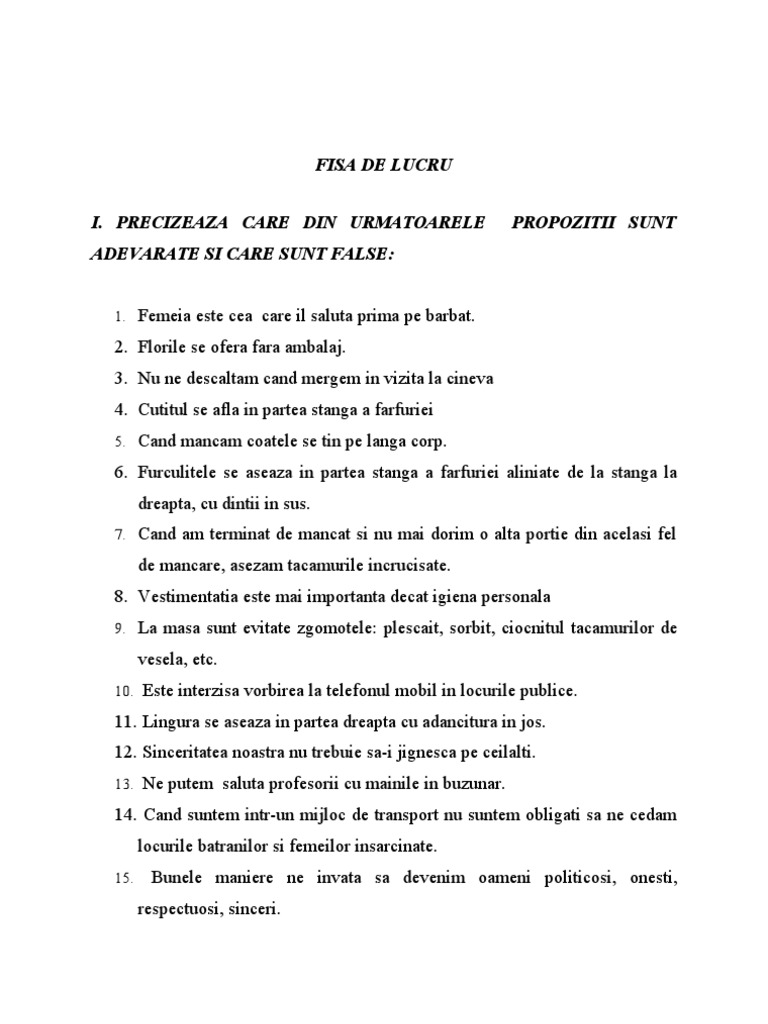 Bunele Maniere La Varsta Copilariei Fisa De Lucru Catalina Birsan