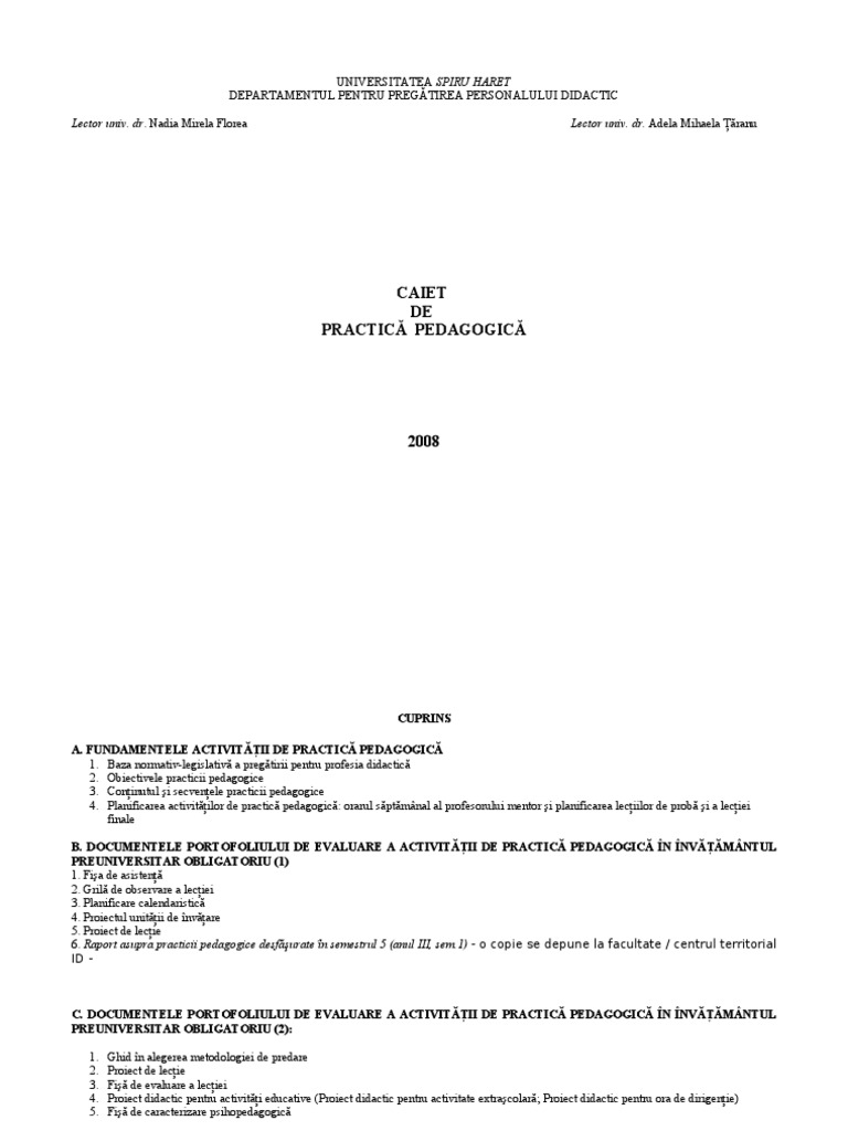 Pdf Caiet De Practică Pedagogică In Invăţămantul Preuniversitar Obligatoriu Nivelul Iniţial De Certificare Pentru Profesia Didactică