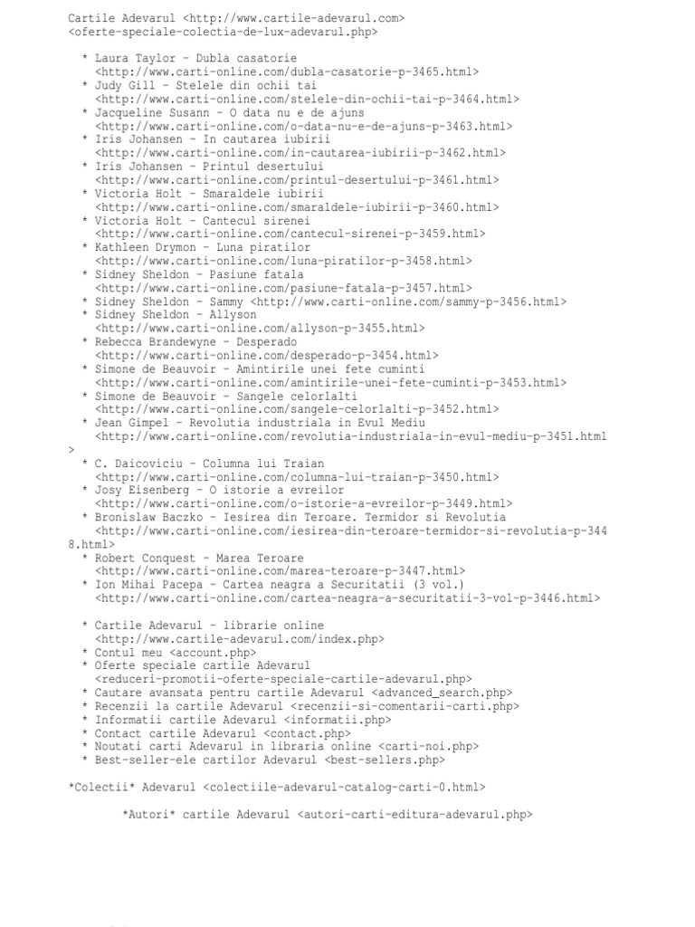 As vrea sa cumpar colectia adevarul 100 de carti pe care trebuie sa le ai dar nu gasesc pe paginile dumneavoastra de internet o adresa unde pot face comanda. Diversi autori adevarul 240 00ron 227 99ron. Cianura pentru un suras. M ar ajuta foarte mult daca ati putea sa mi furnizati o informatie in acest sens.