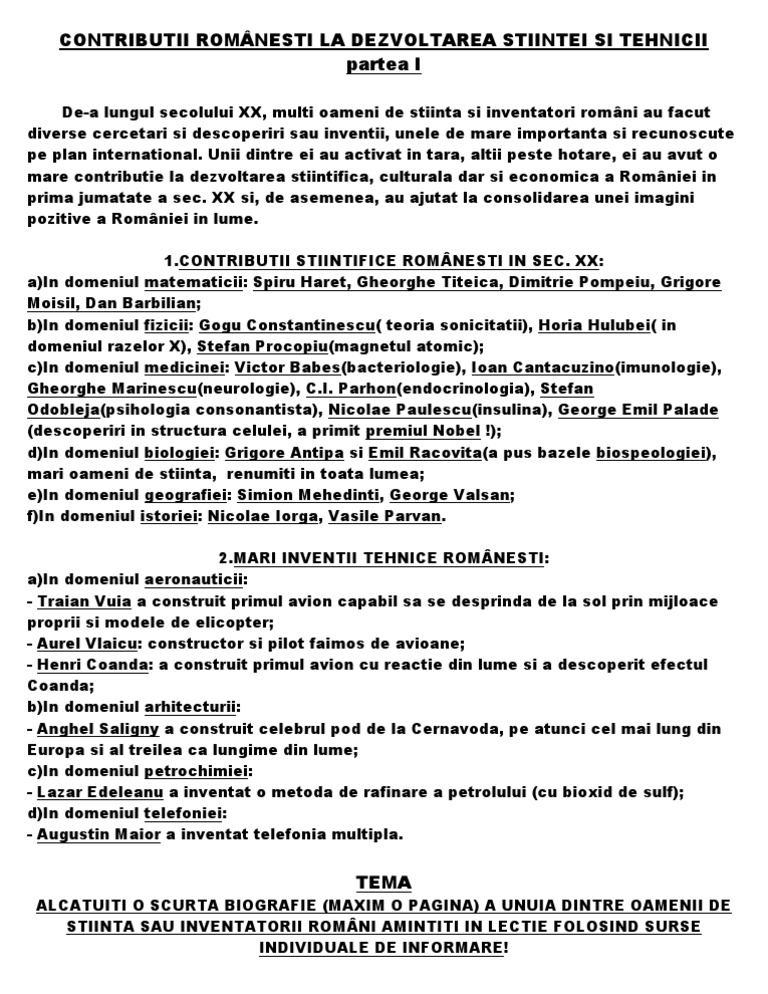 Contribuţii Romanesti La Dezvoltarea Stiinţei Si Tehnicii La Sfarsitul Lecţiei Elevii Vor Sti