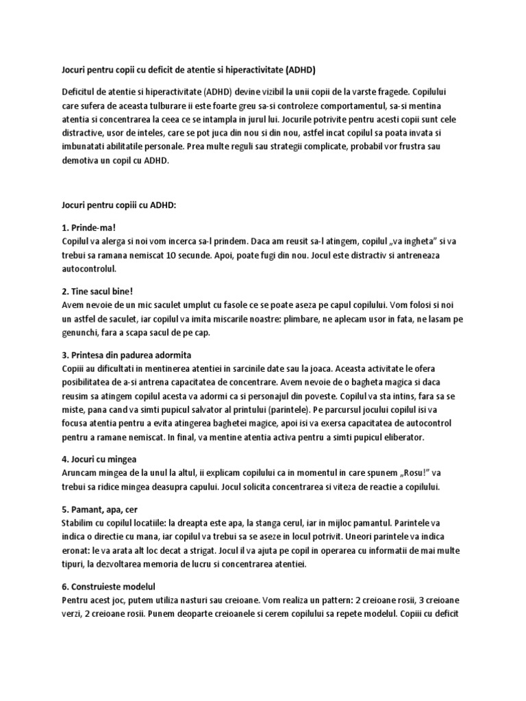 Jocuri Pentru Copii Cu Deficit De Atentie Si Hiperactivitate