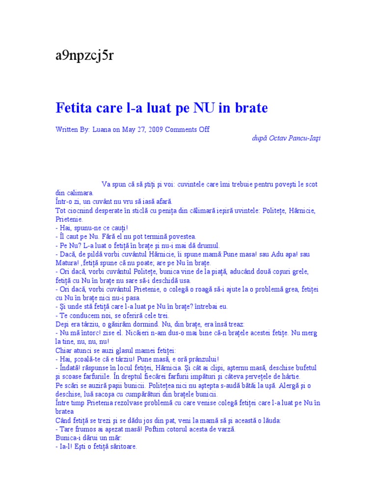 Doc Fetiţa Care L A Luat Pe Nu In Braţe Adaptare Dupa Octav Pancu Iasi Neagoe Simona Academia Edu
