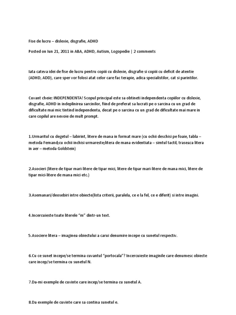 Educarea Atenţiei Copilului Cu Adhd Fise De Lucru Edupsi