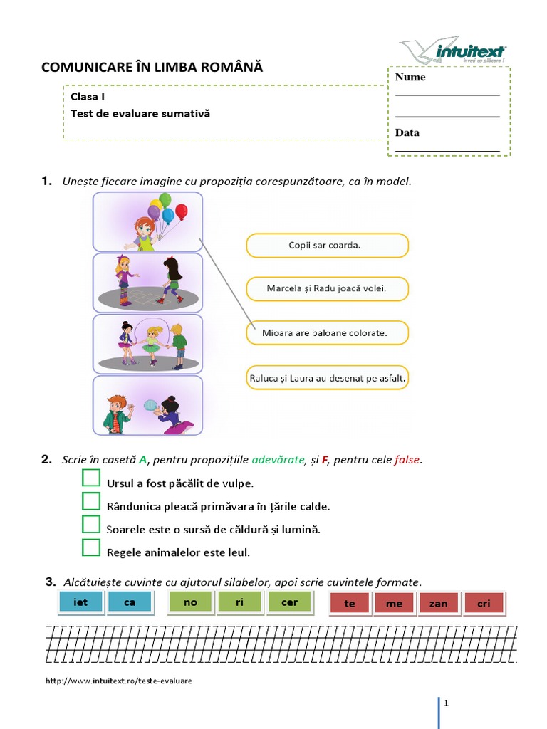 Fise Test De Evaluare Clasa 1 Comunicare In Limba Romana