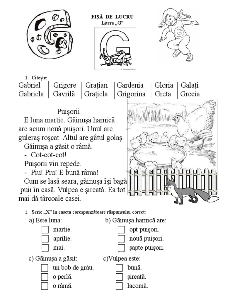 Litera G Proverbe Romanești Joc Didactic și Fișe De Lucru