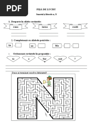 Clasa Pregatitoare Fisa De Lucru Pentru Sunetul Si Litera N Invățare Predare Fișe De Lucru