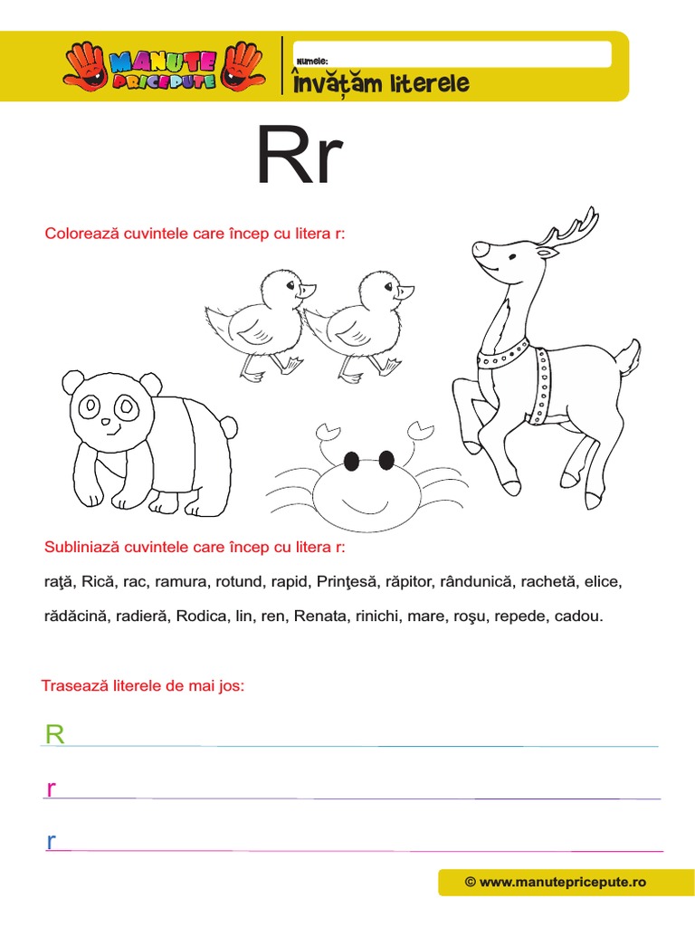 Fise De Lucru Cu Litera R