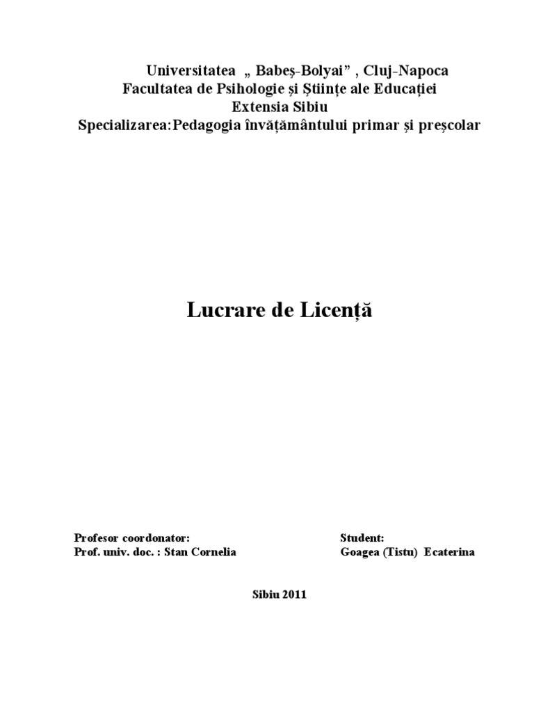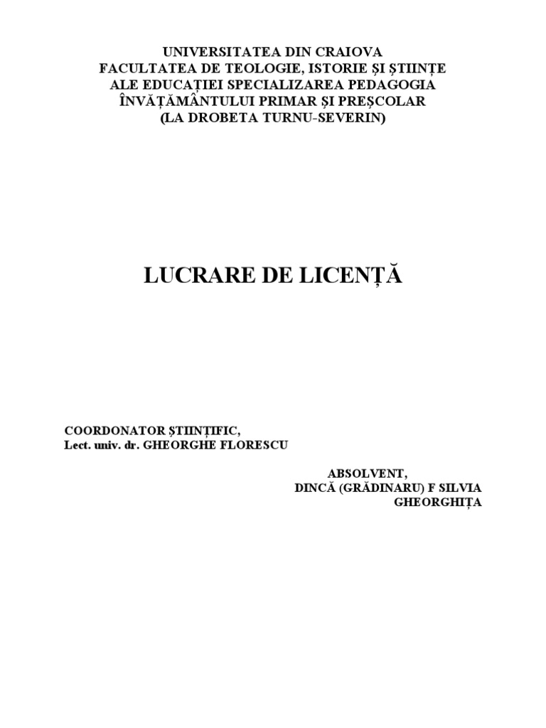 Lucrare De Licenta Pedagogia Invatamantului Primar Si Prescolar
