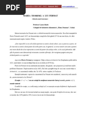 Scientia Ro Marea Teoremă A Lui Fermat 1