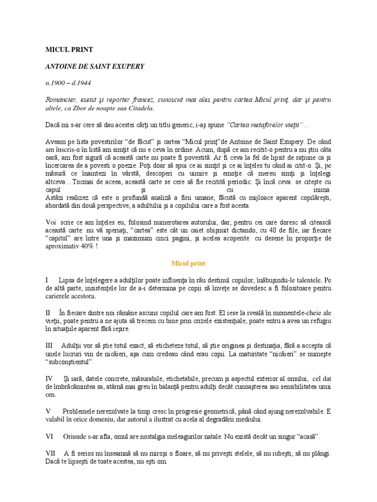 Micul Print Antoine De Saint Exupery Raluca Popa Academia Edu
