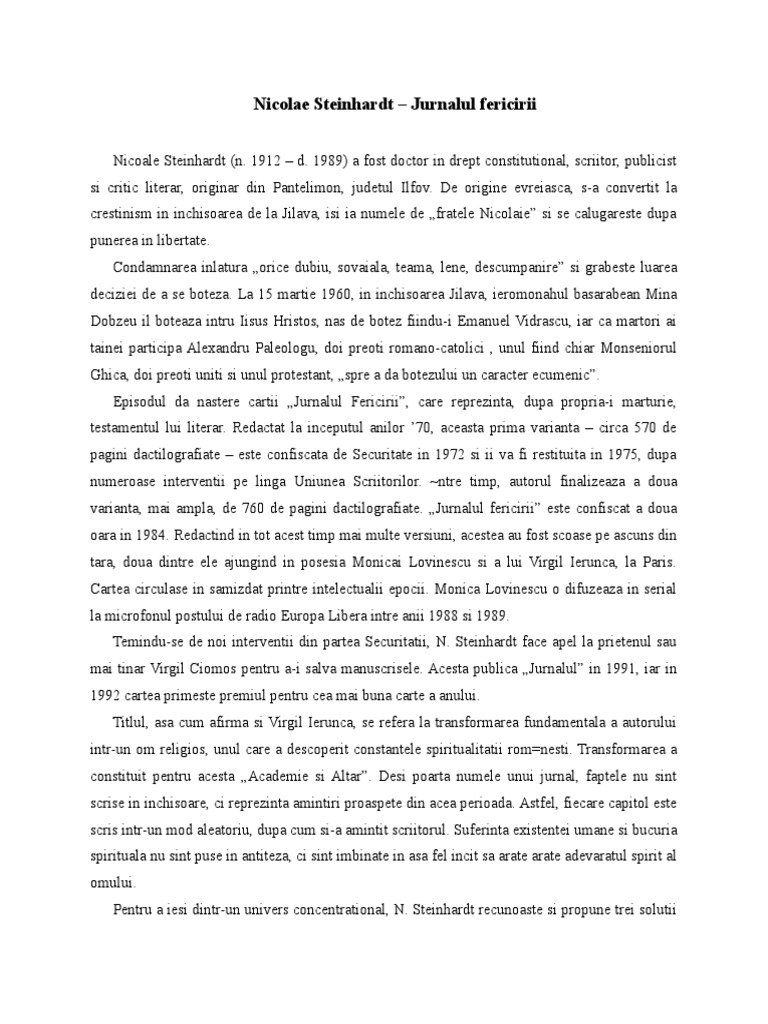 Steinhardt Nicolae Jurnalul Fericirii Pdf