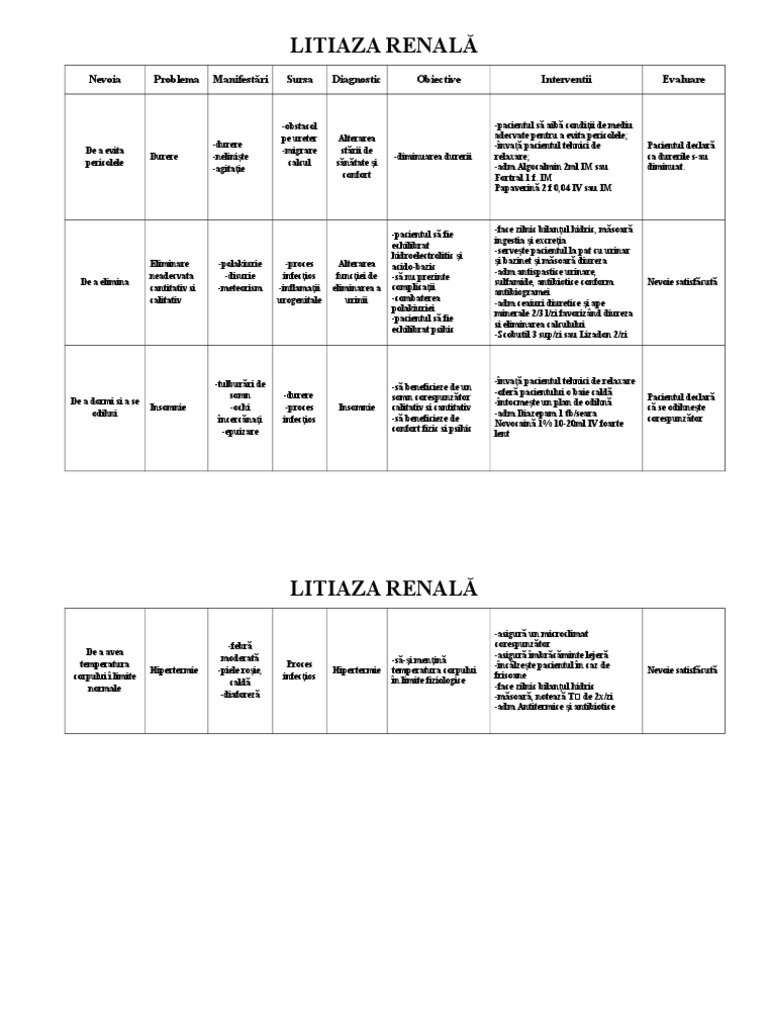 Ingrijirea Bolnavului Cu Litiaza Renala Proiecte Ro