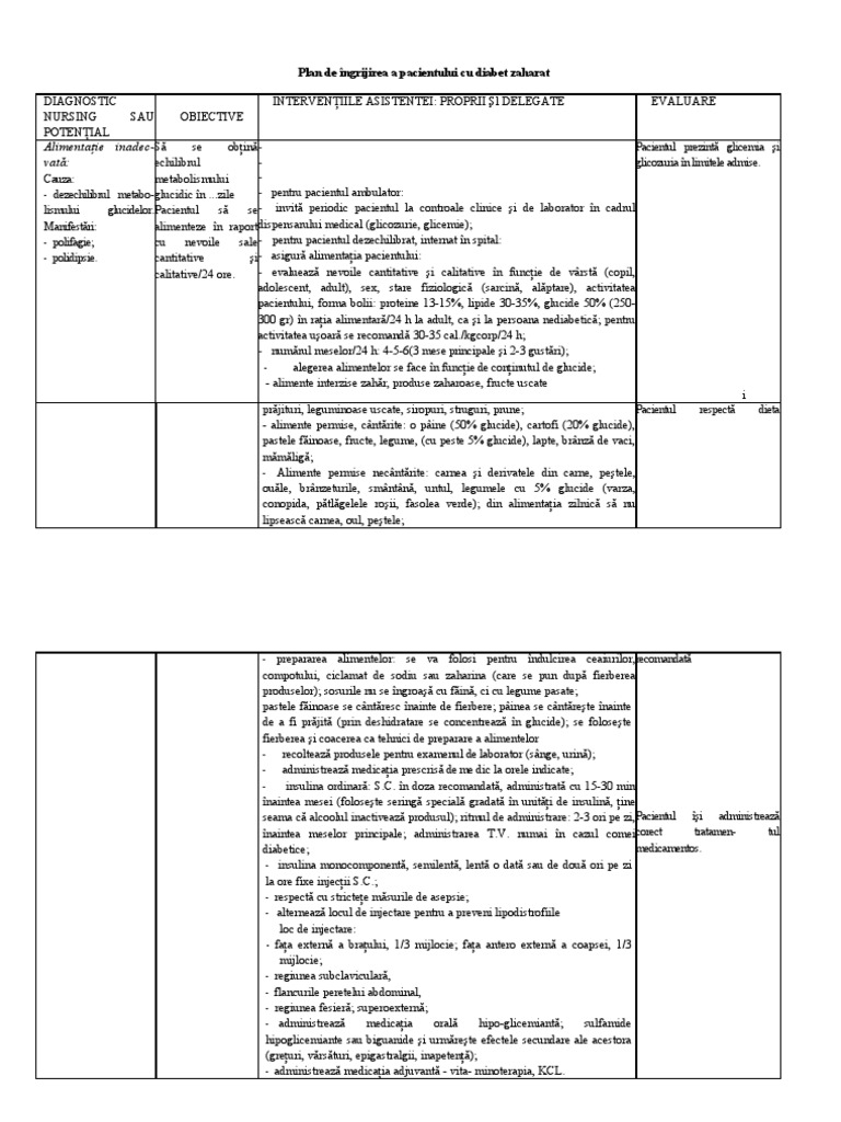 Plan De Ingrijirea A Pacientului Cu Diabet Zaharat