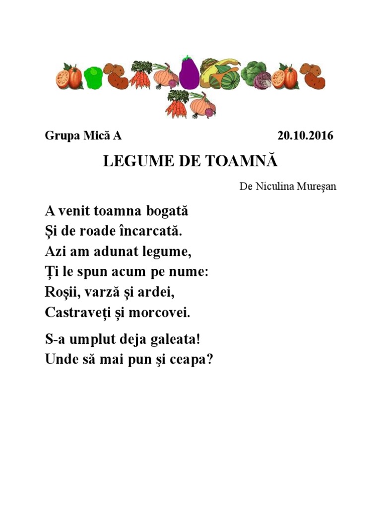Legume De Toamnă In 2020 Versuri Pentru Copii Activități Preșcolare Activități Preșcolari