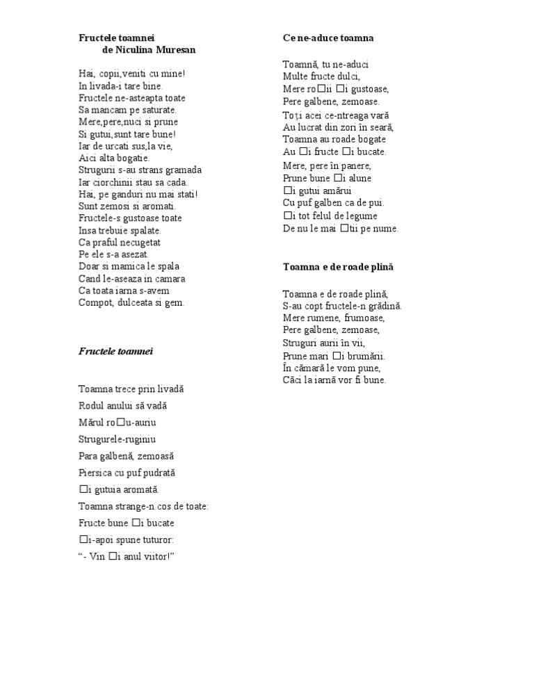 Fructele Toamnei Poezii