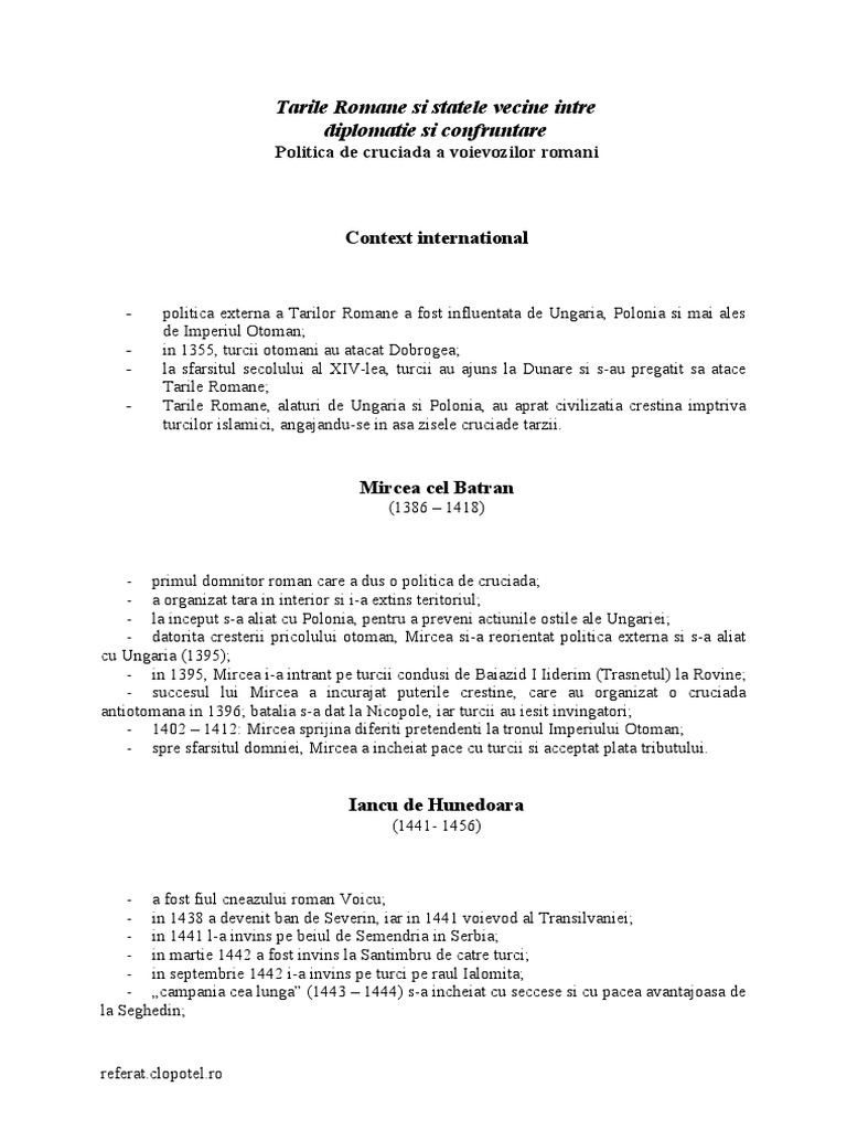 Politica De Cruciada A Voievozilor Romani By Proiecte Geografie