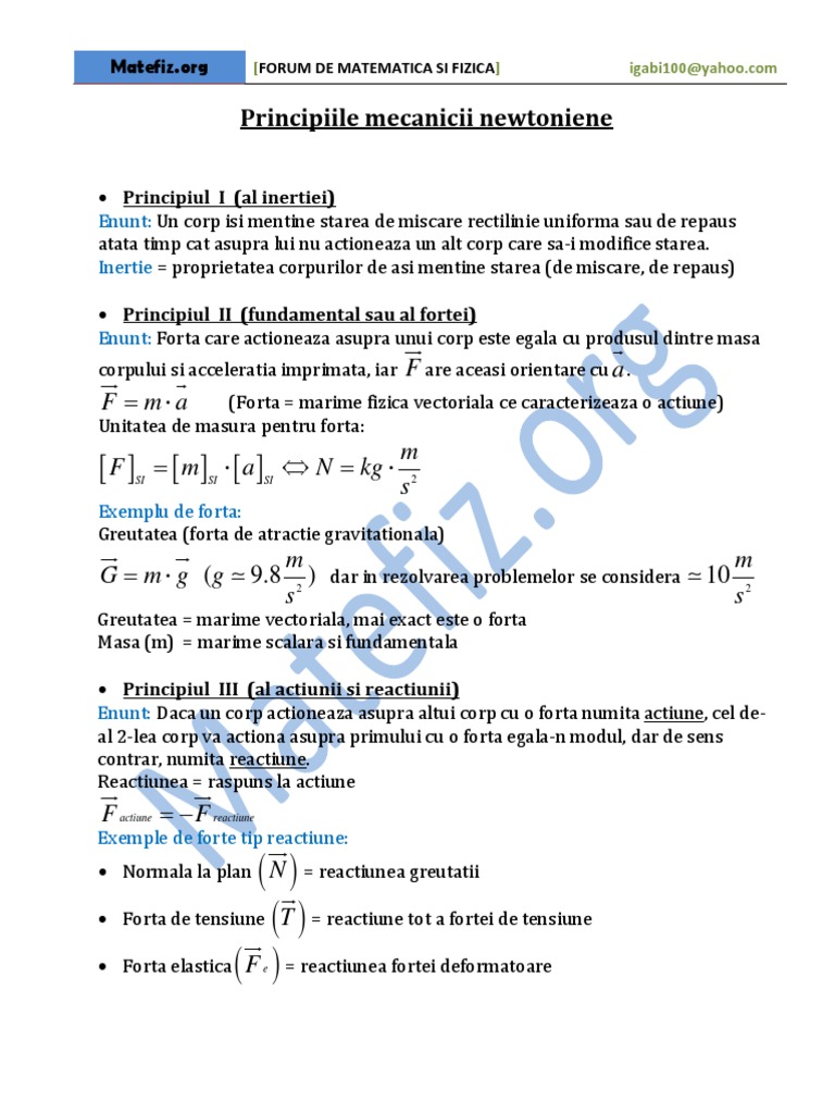 Principiile Mecanicii Clasice Newtoniene Memorator Fizică Liceu