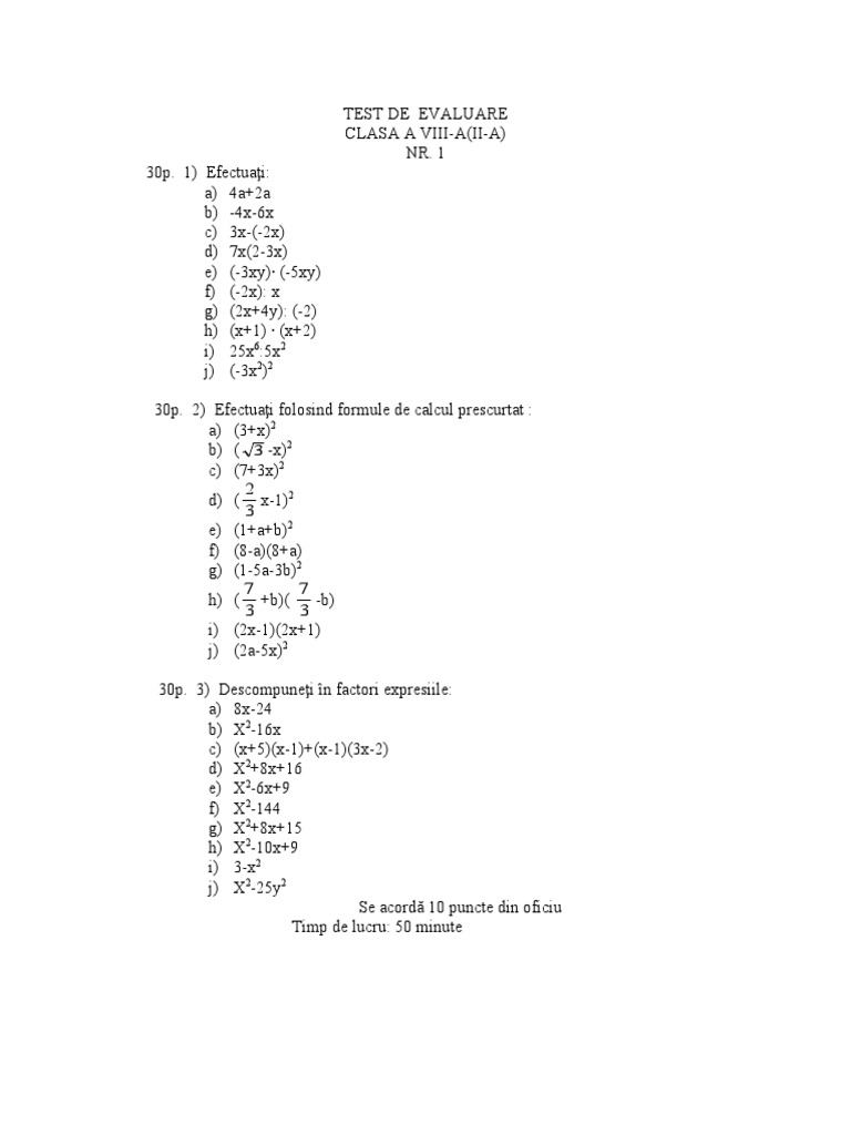 Test Evaluare Clasa A Viii A Operatii Cu Numere Reale Calcule Cu Radicali Evaluare Teste Matematică