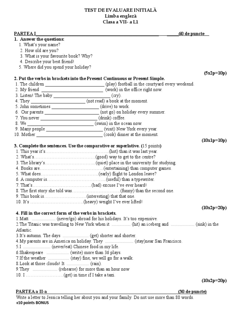 Test De Evaluare Initiala 7b