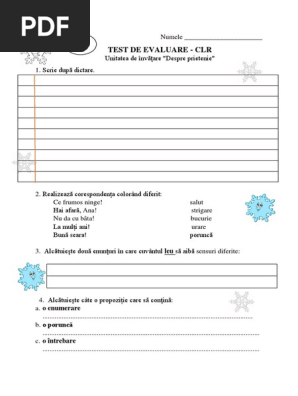 Test De Evaluare Clr Clasa 1