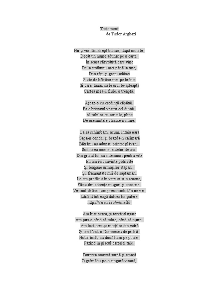 Testament De Tudor Arghezi Versuri