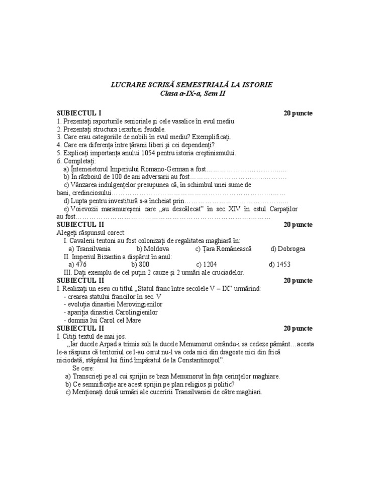 Doc Test Istorie Clasa A Ix A 1 Hritcu Cristina Academia Edu