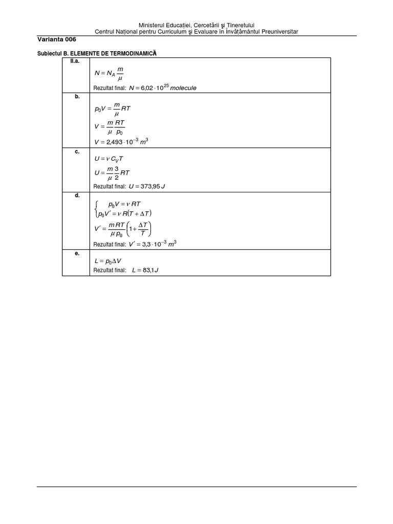 Variante Bac Fizica 2009 Termodinamica Rezolvari Complete